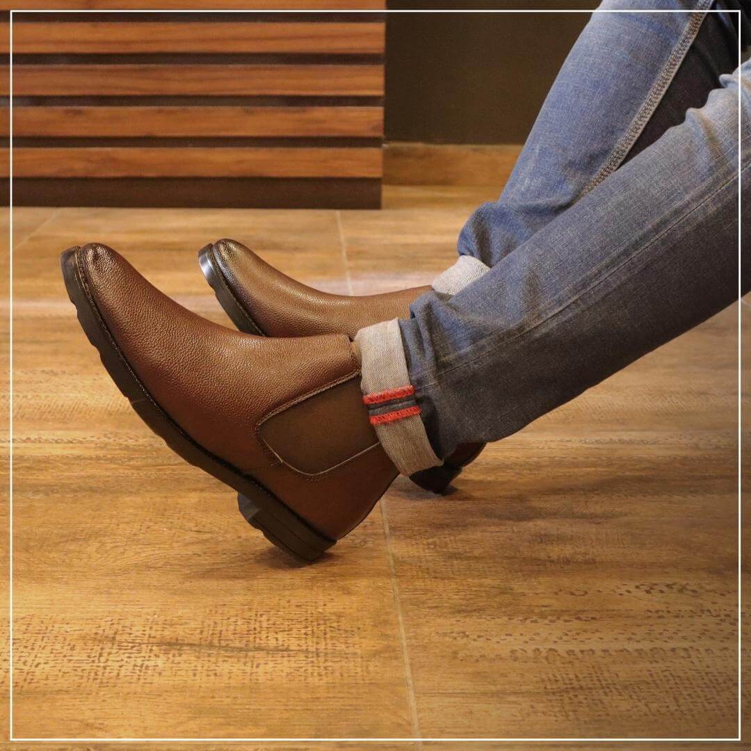 LEATHER BROWN ANKLE FORMAL SHOES FOR MEN